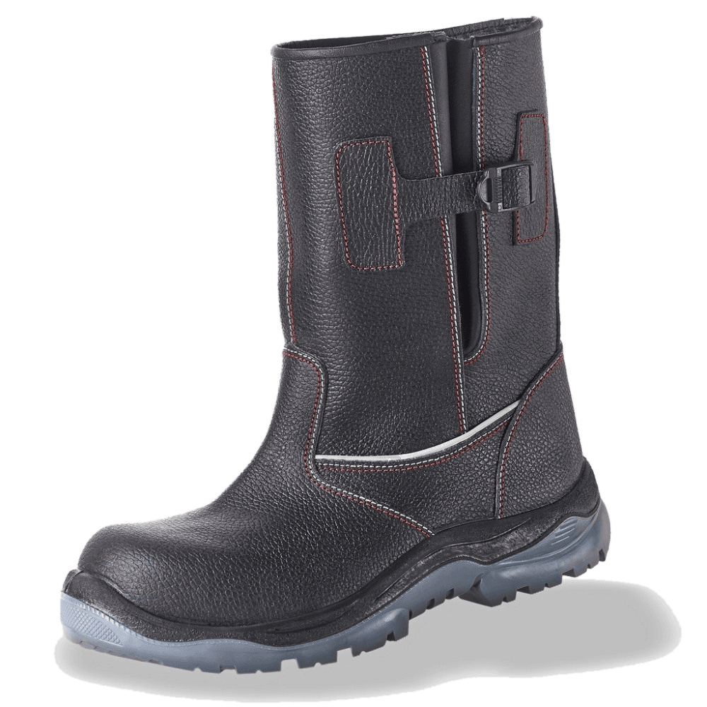 КП ПУ/ТПУ кожа черный с серым Сапоги кожаные с регулируемыми голенищами изготавливаются литьевым методом крепления подошвы из высокопрочного маслобензостойкого, кислотощелочного полиуретана и термополиуретана. Назначение - для тяжелых работ в различных отраслях промышленности. Композитный подносок выдерживает нагрузку 200 дж.